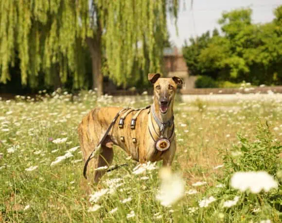 Der wunderschöne Windhund-Rüde ist eine stolze, anmutige Erscheinung. Er ist fünf Jahre jung, circa 65 Zentimeter groß und hat den typischen Körperbau eines reinrassigen Windhundes.