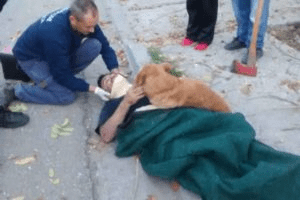 Währenddessen hatte jemand den emotionalen Moment fotografiert, als Tony sein Herrchen die ganze Zeit umarmte, als dieser bewusstlos auf dem Boden lag.